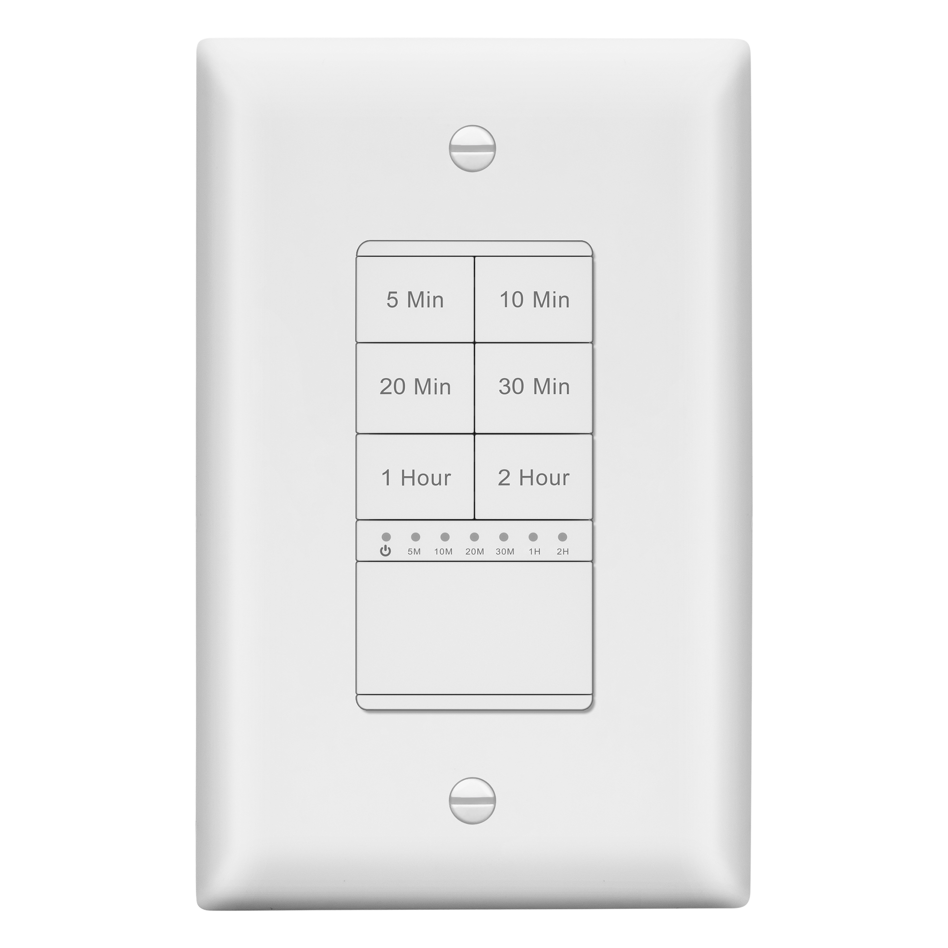 2-Hour Countdown Timer Switch, In-Wall, No Neutral Required, Ground Required, LED Indicator, Timer for Fans or Lighting, Wall Plate Included