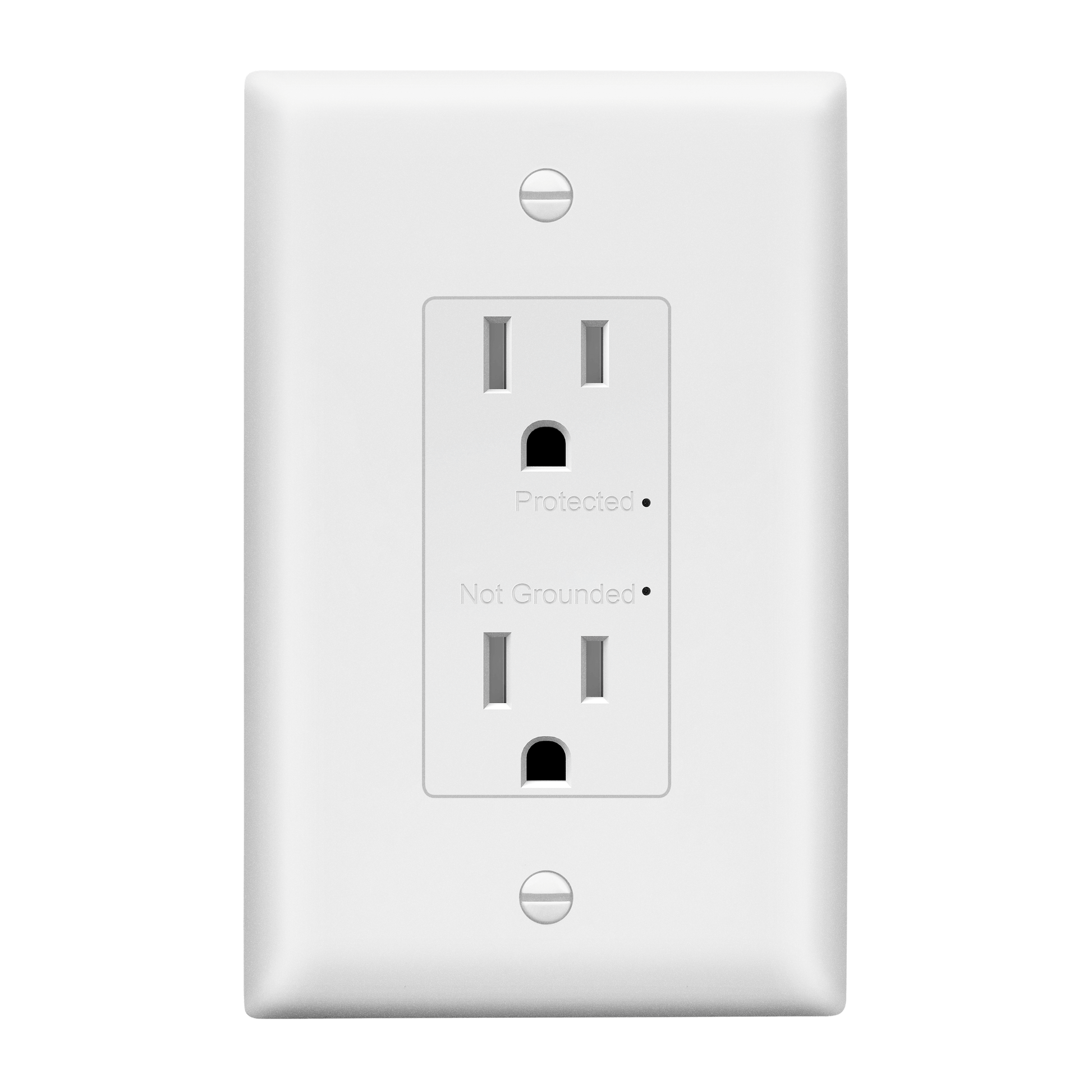 15A Surge Protected Duplex Decorator Receptacle, Child Safe Tamper-Resistant Wall Outlet, Protect Up to 1500J, LED Grounding Indicator, Self-Grounding, Wall Plate Included