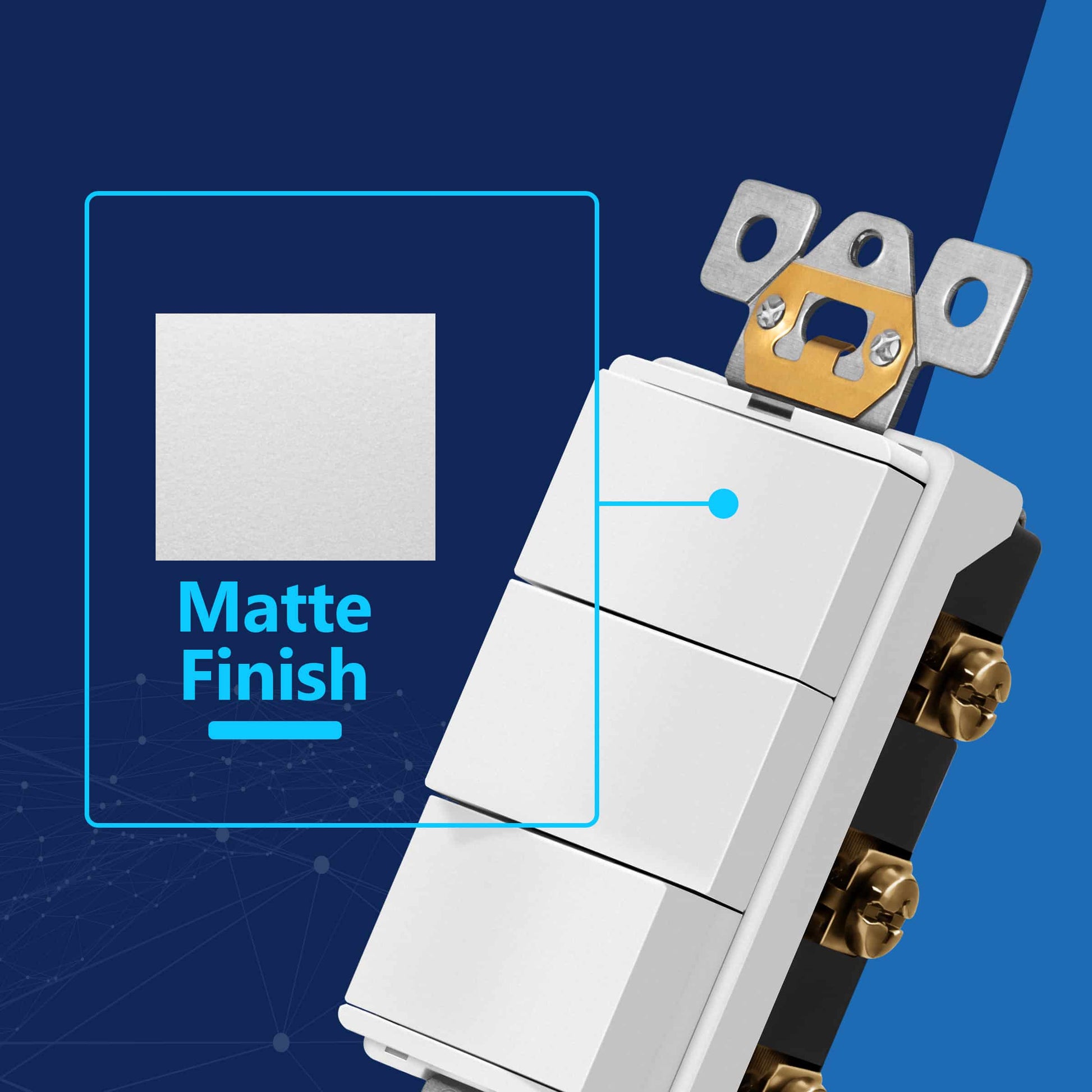This in-wall device allows users to control three light fixtures independently, offering convenience and flexibility. The triple paddle rocker switches ensure smooth operation, while the built-in LED locator light provides visibility in dark environments. Made from durable, impact-resistant materials, it resists wear and maintains its appearance over time.