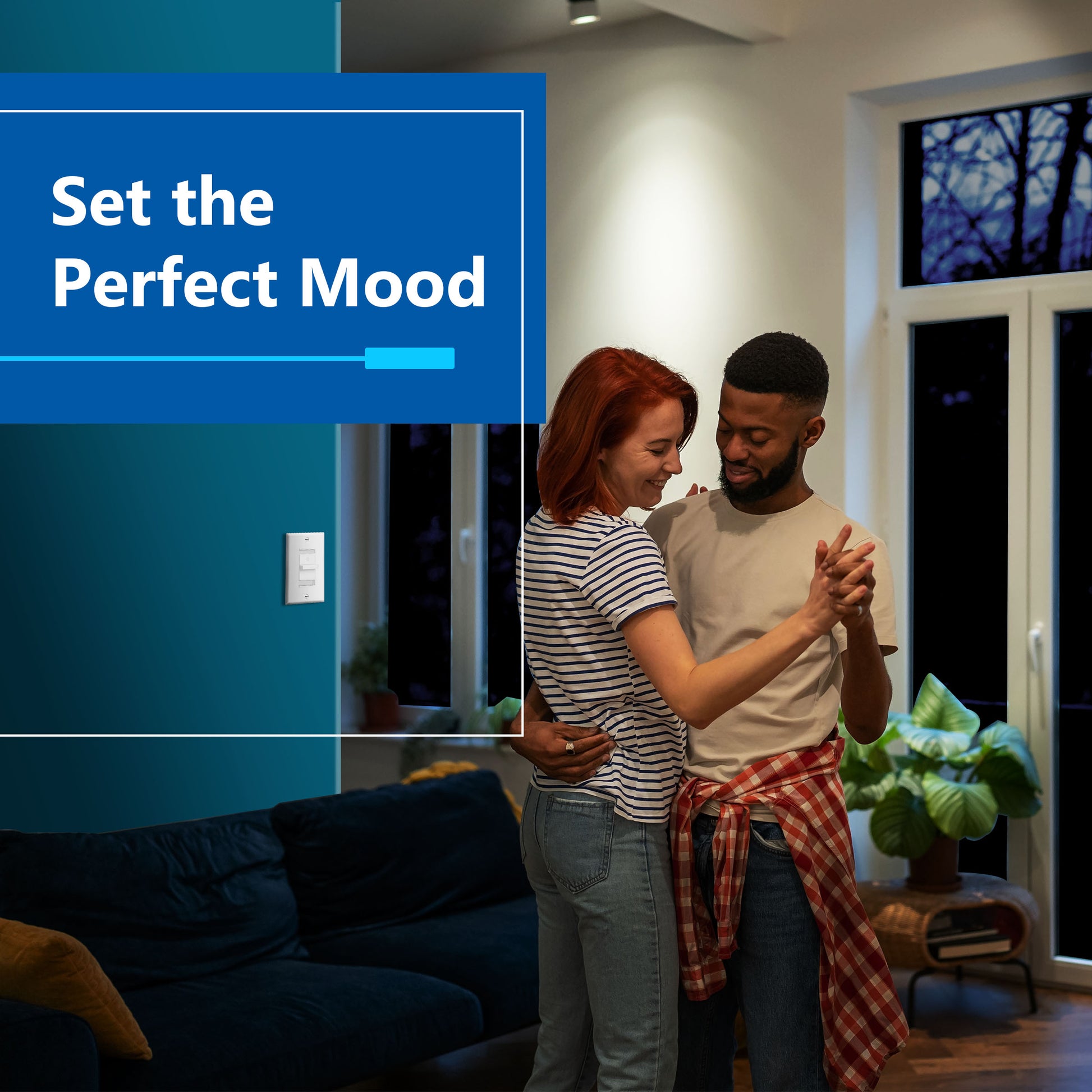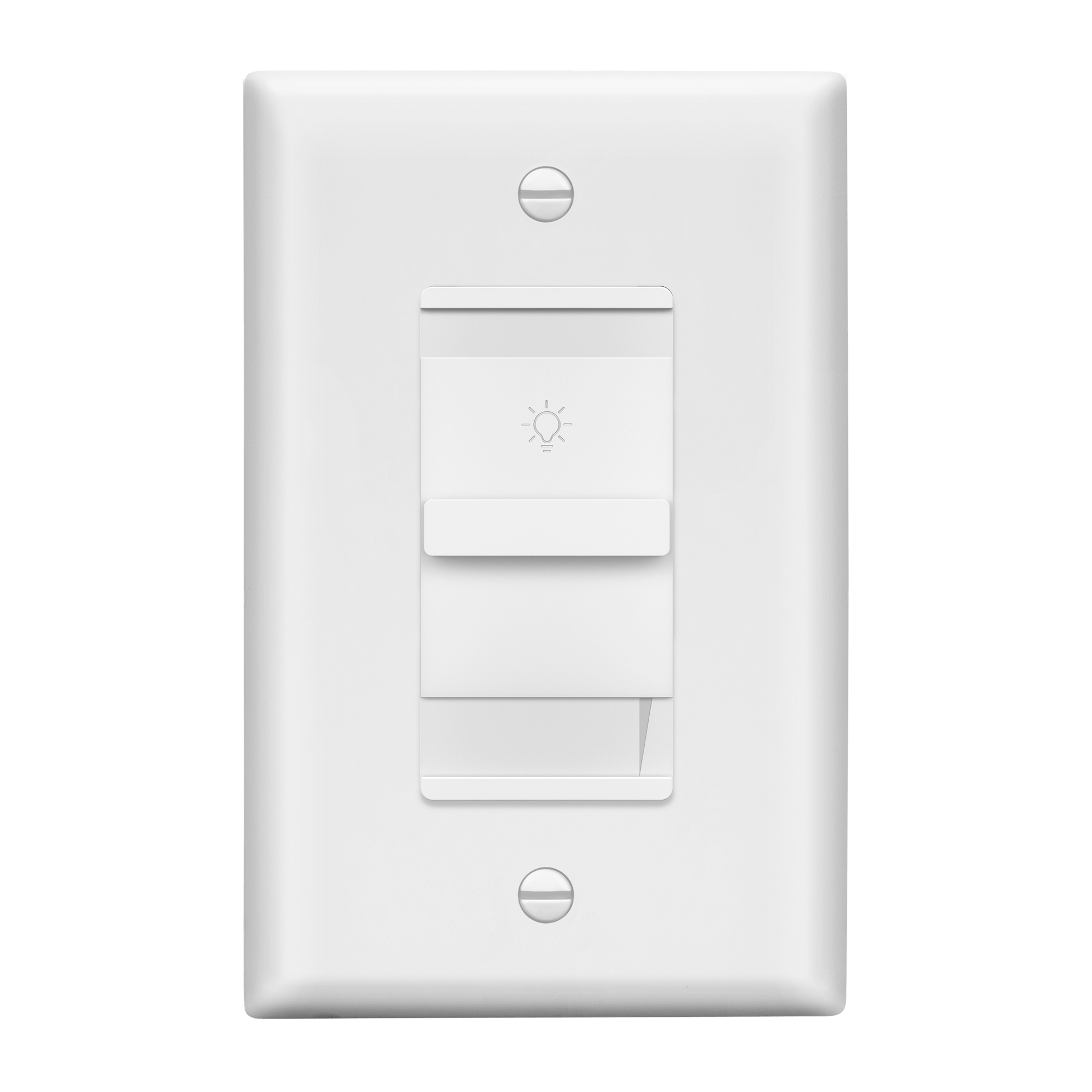 This dimmer switch features an intuitive slide control—simply slide up to brighten and down to dim, with a tactile click indicating the off position. The side tuning dial ensures easy adjustment to eliminate flickering, providing a smooth and customizable lighting experience while promoting energy efficiency and reducing electricity costs. Made of Polycarbonate Thermoplastic material to provide the durability and resilience needed to withstand hard impacts and heavy force; heat and fade resistance to temperatures over 100° to prevent discoloration.