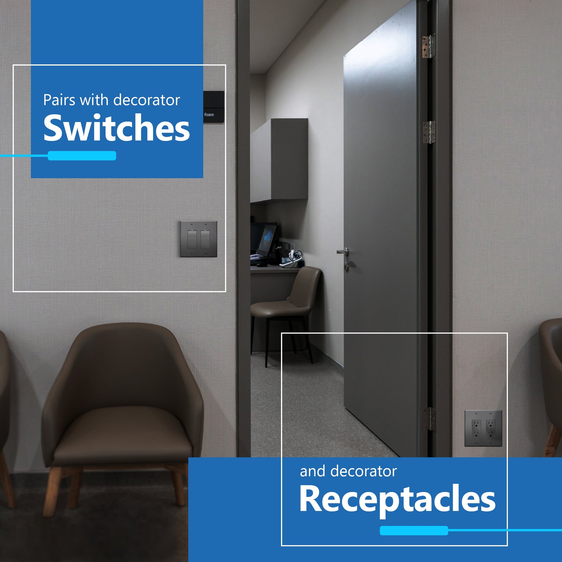 Compatible with decorator-style devices from various brands, this wall plate provides a perfect fit and seamless color match when paired with LIDER products. Featuring a smooth, flat surface with soft edges, it allows for easy cleaning and a sophisticated aesthetic, making it a perfect addition to contemporary homes, offices, hotels, and retail spaces.