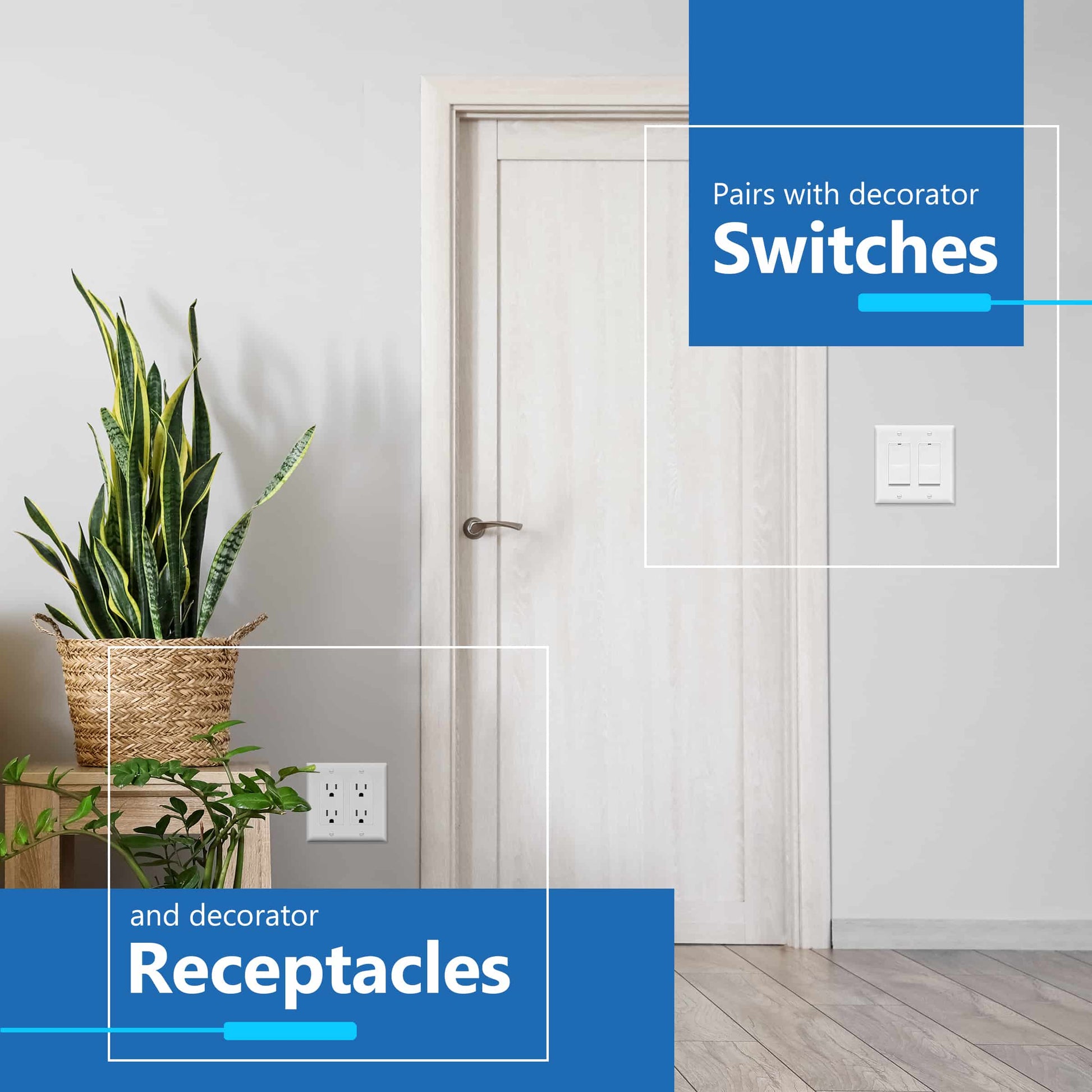 Decorator Wall Plate, Cover Plate for decorator switch or outlet, Polycarbonate Thermoplastic Wall Plate, 2-Gang, Mid-Size