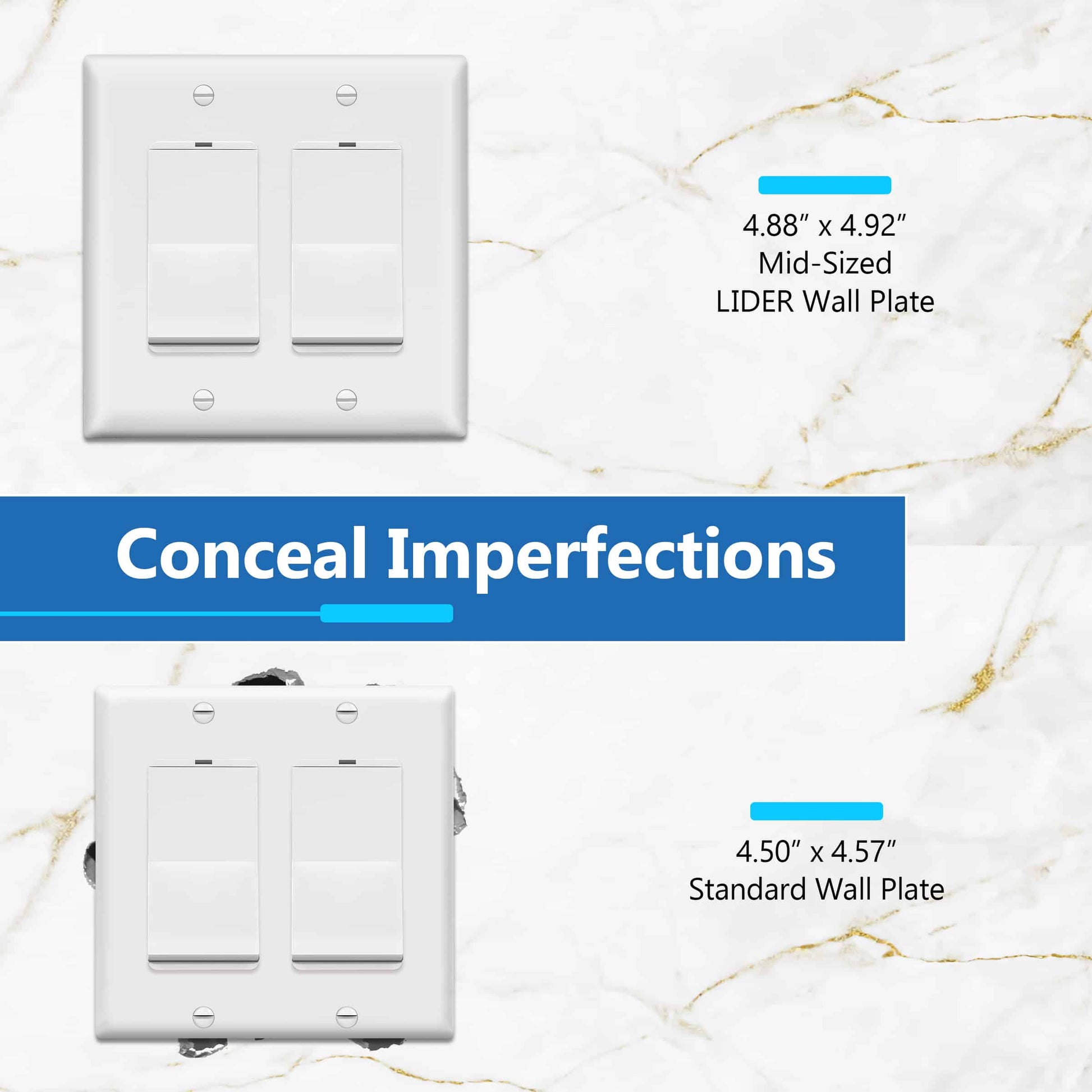 The LIDER Decorator Wall Plate, Mid-Size offers a fashion-forward and practical solution for upgrading wall fixtures in homes and commercial spaces. This mid-size version provides slightly more wall coverage than standard-size plates, making it ideal for concealing wall imperfections from previous installations.