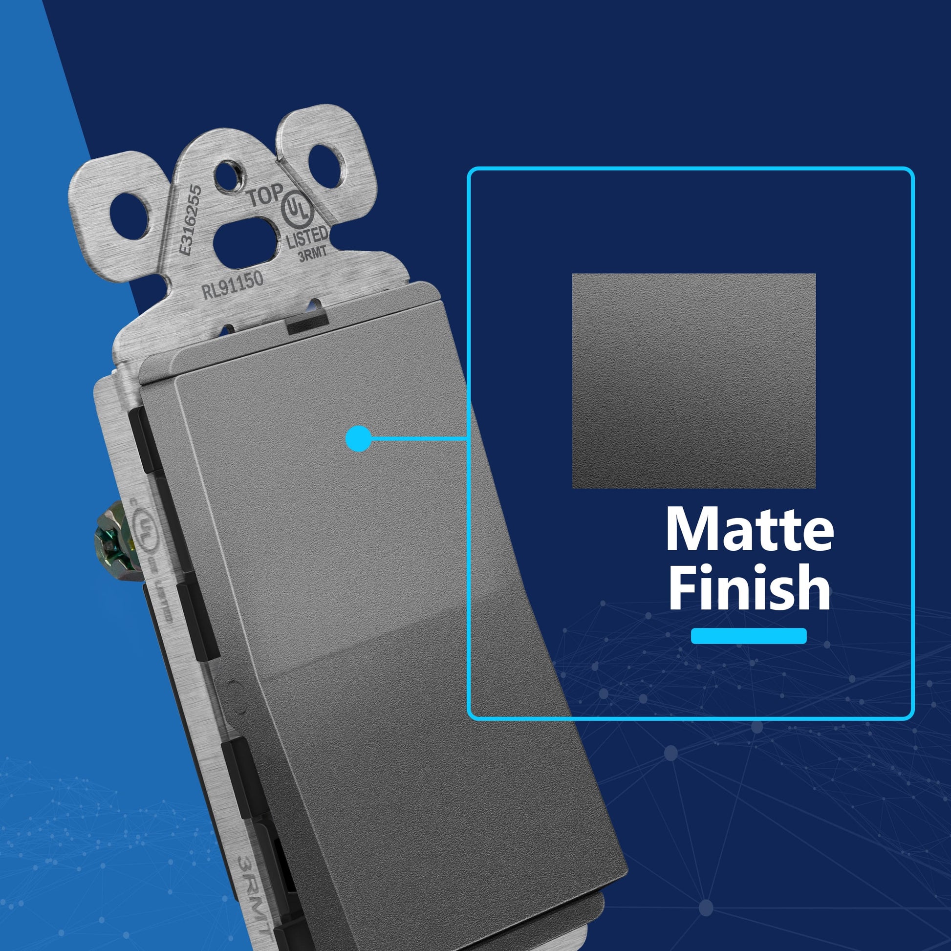 Perfect for homes, apartments, hotels, offices, and commercial spaces, this light switch offers simple installation with clamp-type back insert wiring, ensuring fast and secure connections. Built from durable polycarbonate thermoplastic materials, it guarantees long-lasting performance while adding a sleek, modern touch to any interior. Matching wall plates are available separately for a polished, cohesive finish.