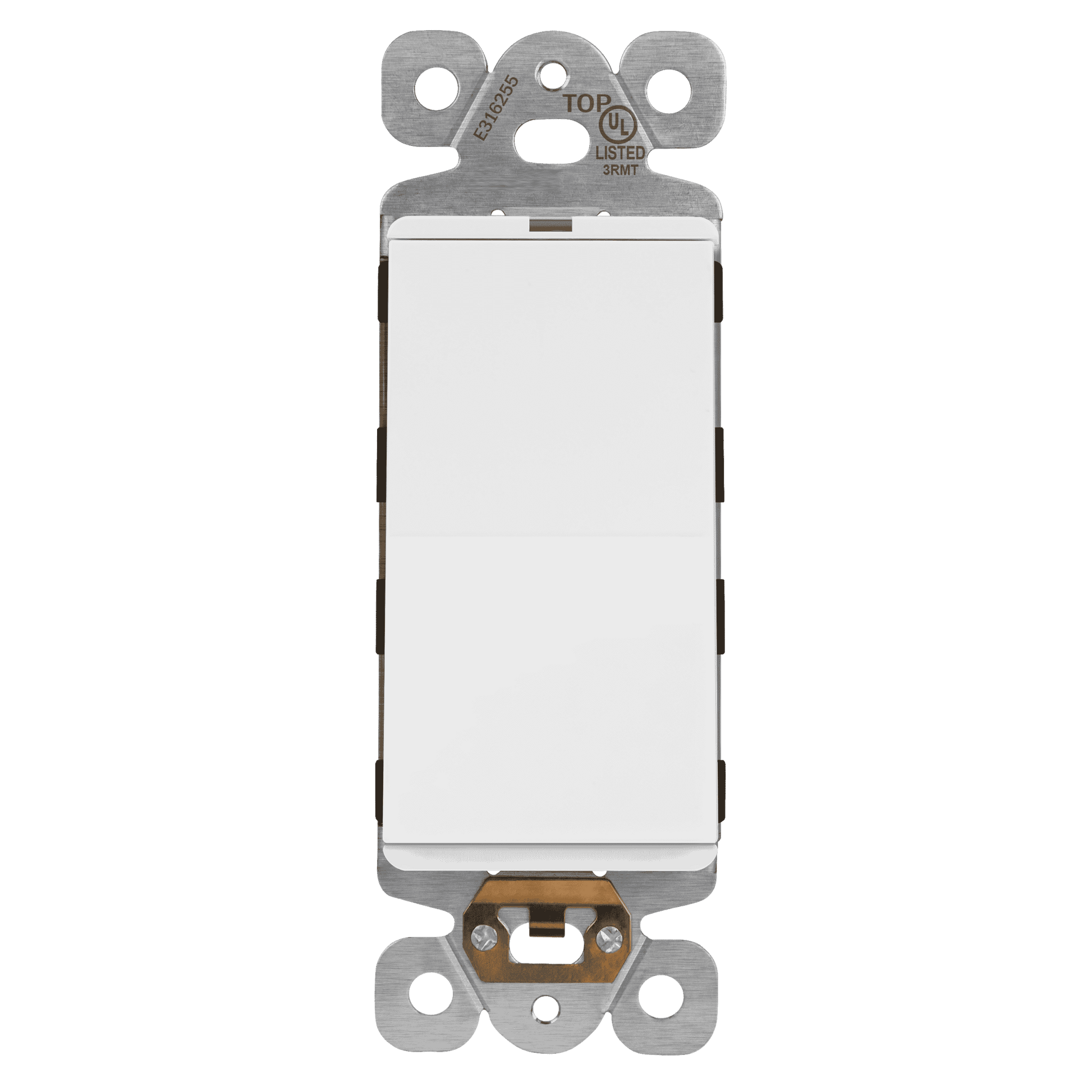 This decorator switch features an integrated LED locator light for easy visibility in dark environments, making it ideal for use in restrooms, pantries, walk-in closets, and more. The paddle design provides intuitive operation with a smooth, responsive feel, ensuring ease of use for all ages.