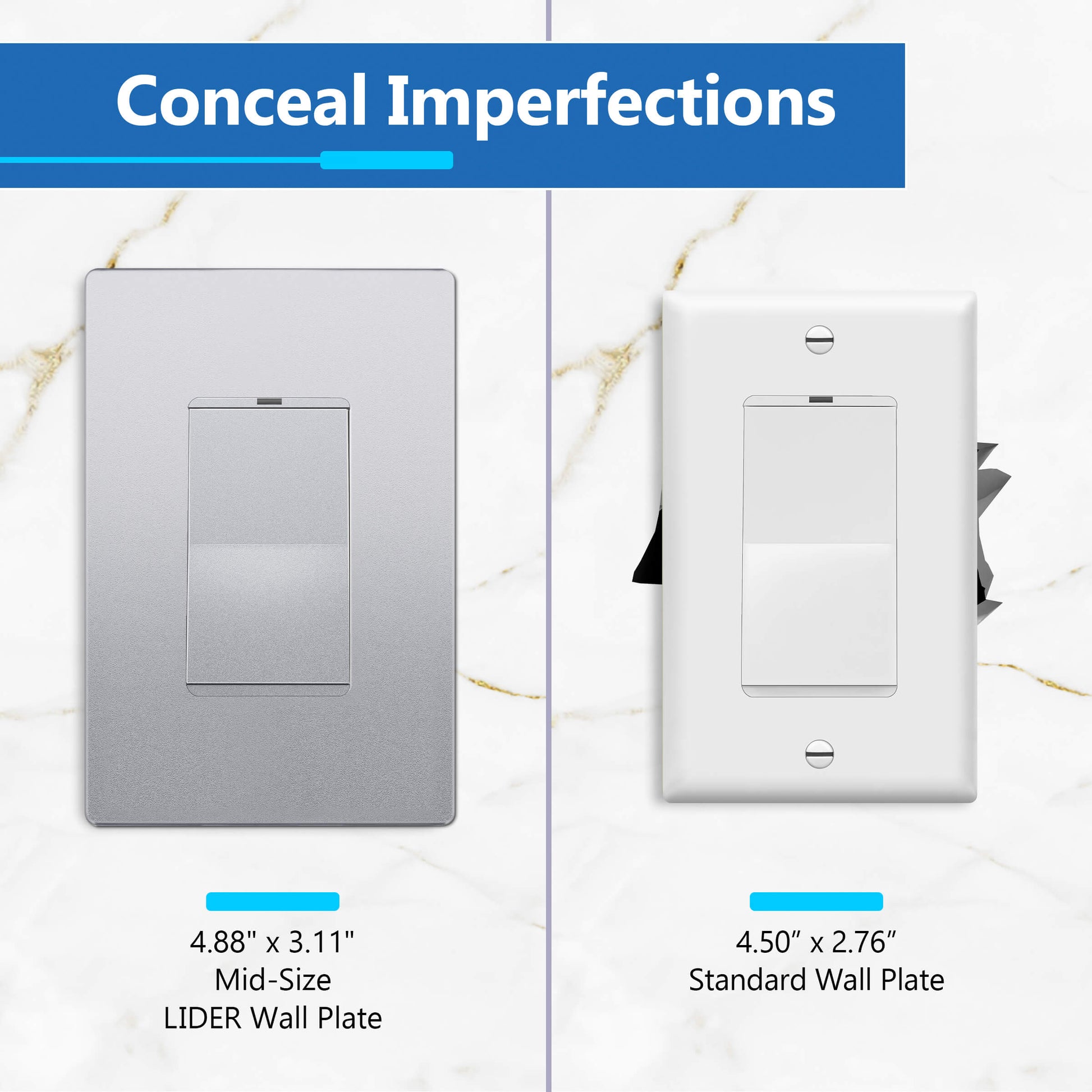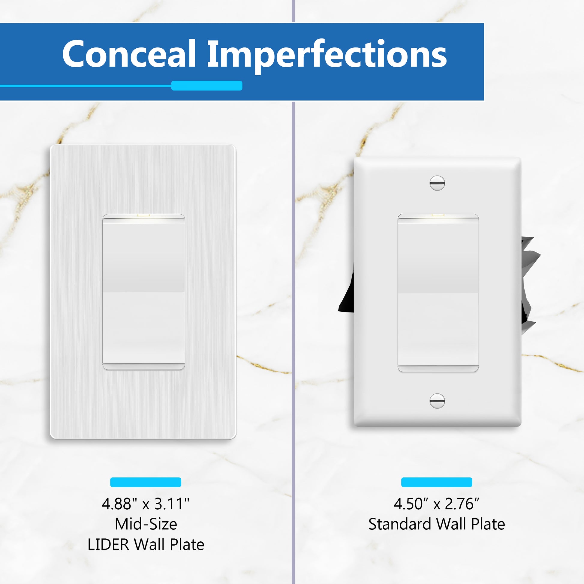 Perfect for residential and commercial applications, this UL-listed mid-size wall plate provides enhanced wall coverage, helping to conceal imperfections while delivering a sleek, refined finish. Whether you're remodeling a space or upgrading to a modern, minimalist aesthetic, the LIDER Decorator Screwless Wall Plate is a stylish and functional choice.