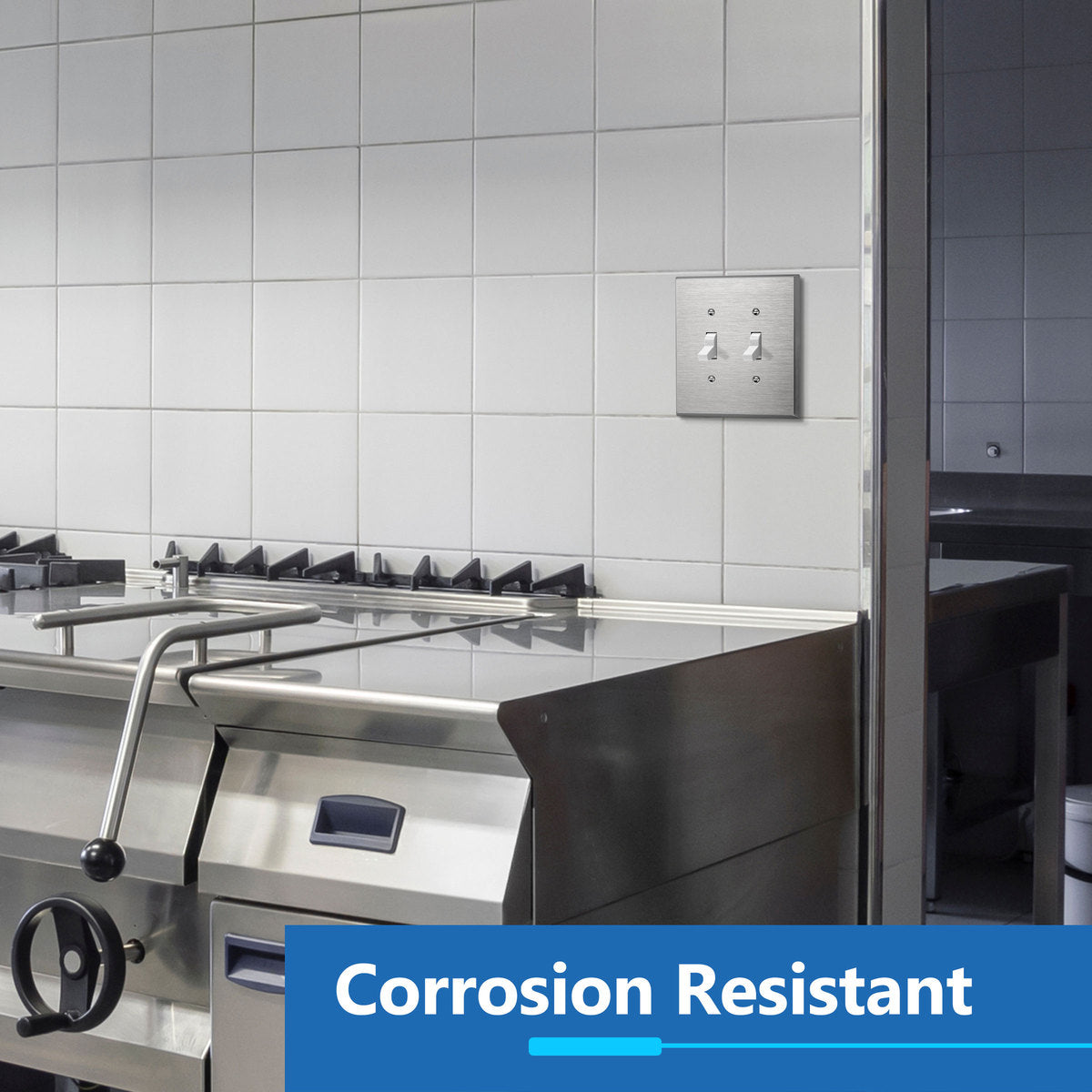 Toggle Light Switch Metal Wall Plate, Stainless Steel Switch Cover, Corrosion Resistant, 2-Gang, Mid-Size