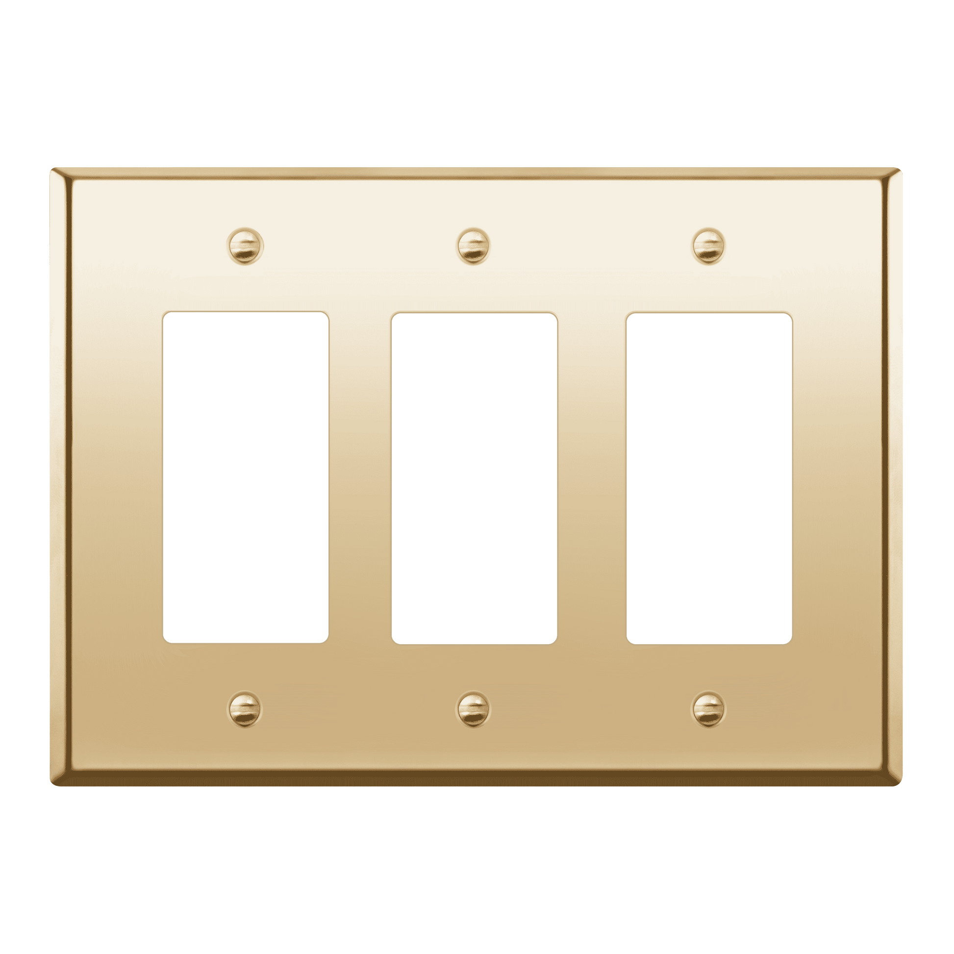 Decorator Switch or Receptacle Metal Wall Plate, Stainless Steel Outlet Cover, Corrosion Resistant, 3-Gang, Mid-Size