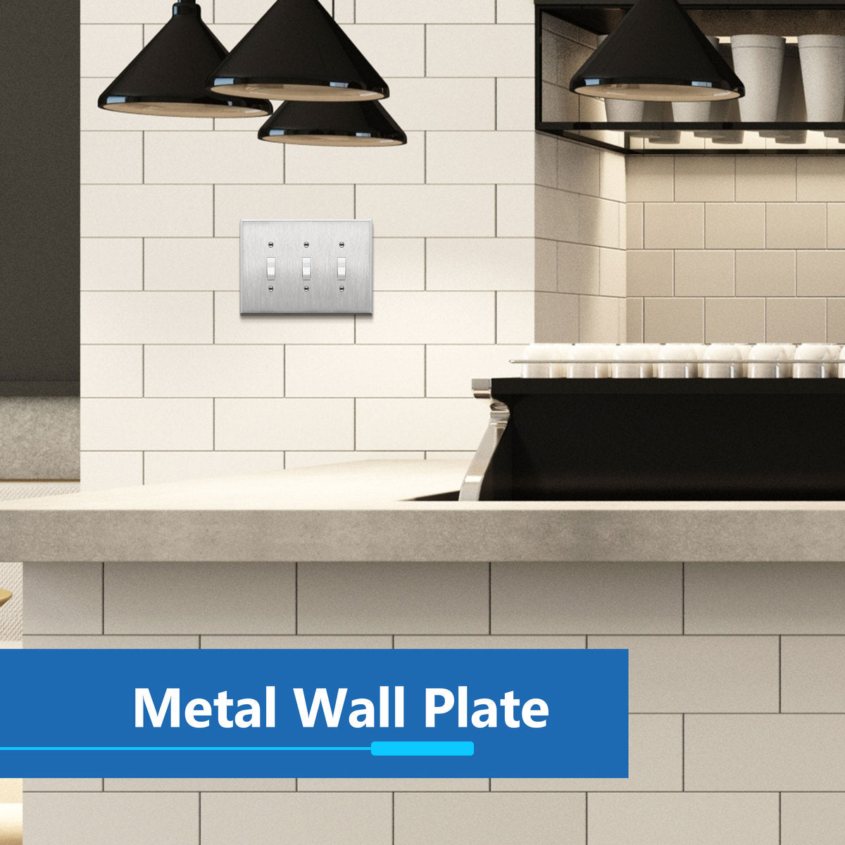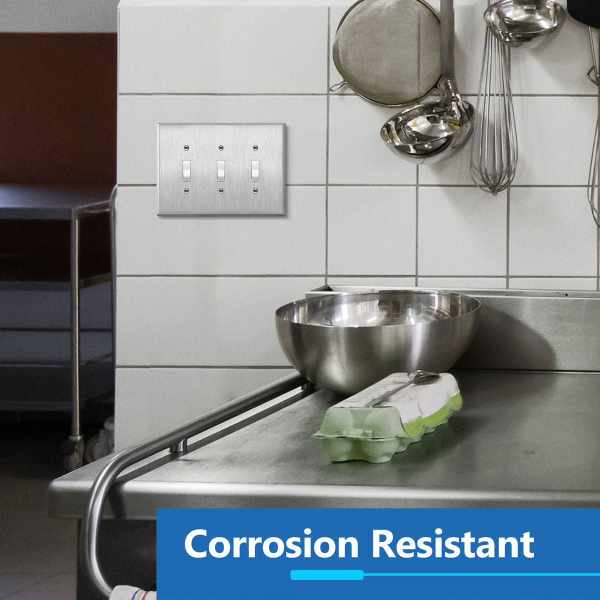 Toggle Light Switch Metal Wall Plate, Stainless Steel Switch Cover, Corrosion Resistant, 3-Gang, Mid-Size