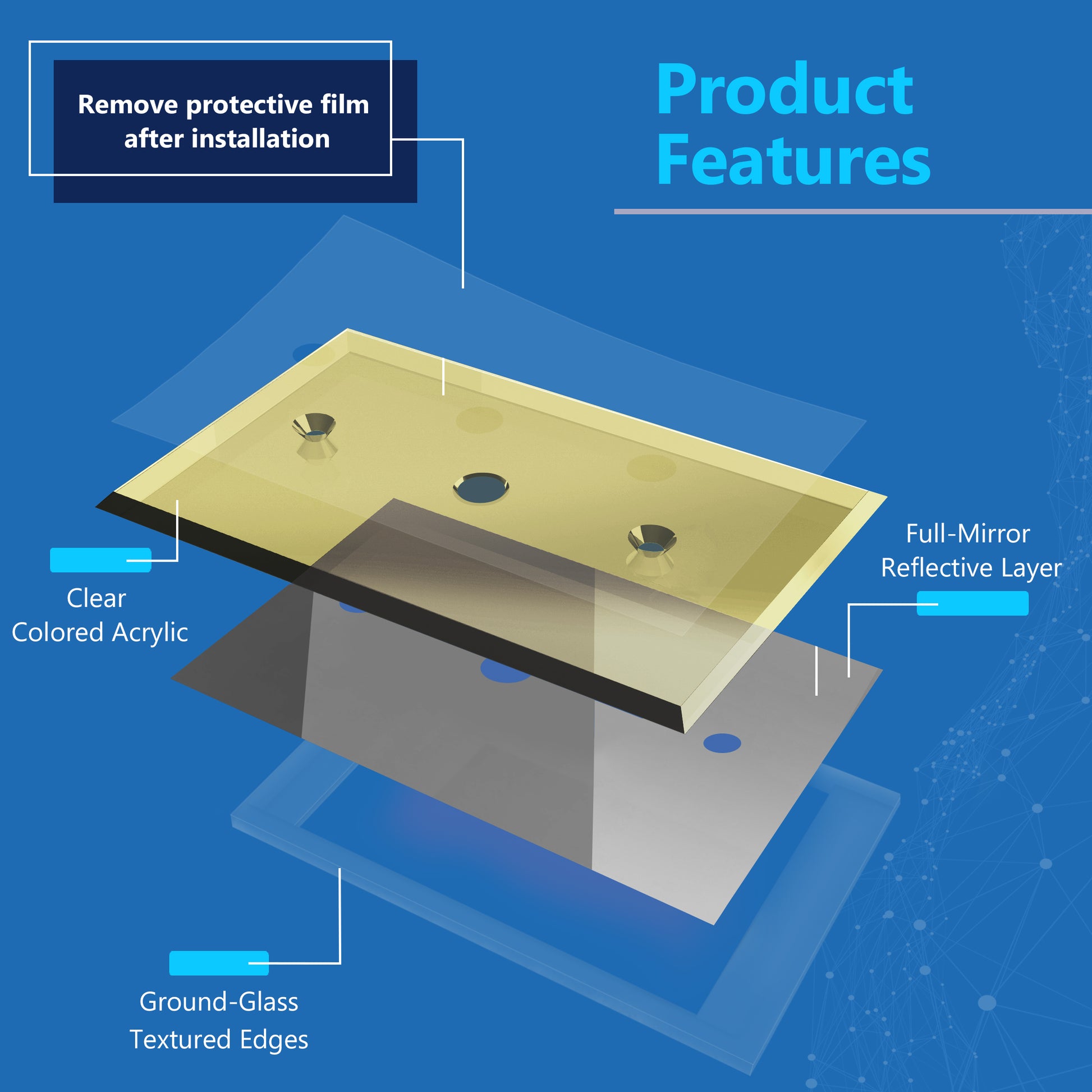 Designed for easy installation, this premium wall plate is perfect for luxury homes, high-end offices, retail spaces, and modern commercial interiors. Its mirror-like finish enhances aesthetic appeal while maintaining a smooth, easy-to-clean surface. Remove the protective film before use to reveal its pristine reflective beauty.