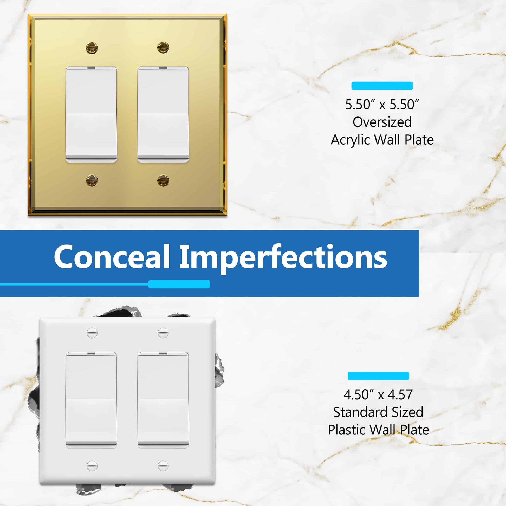 Oversized Acrylic Mirrored Decorator Wall Plate, Reflective Cover Plate for decorator switch or outlet, Plexiglass Wall Plate, 2-Gang