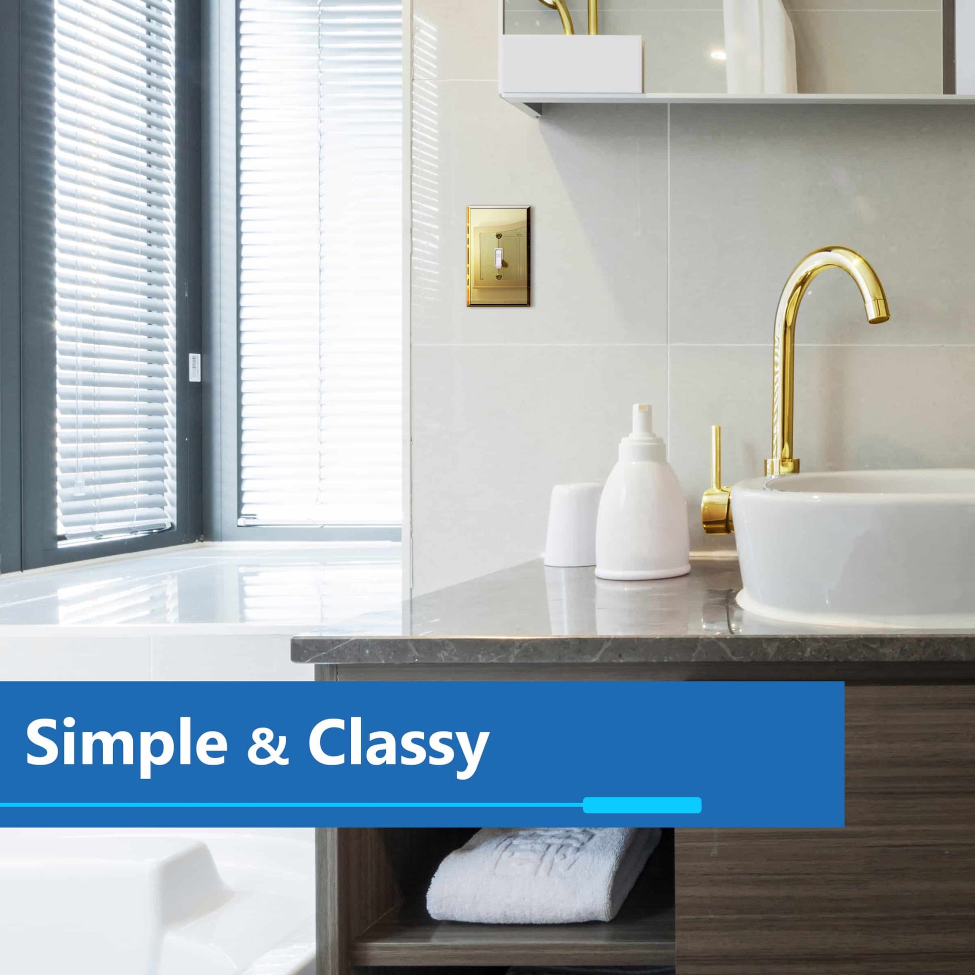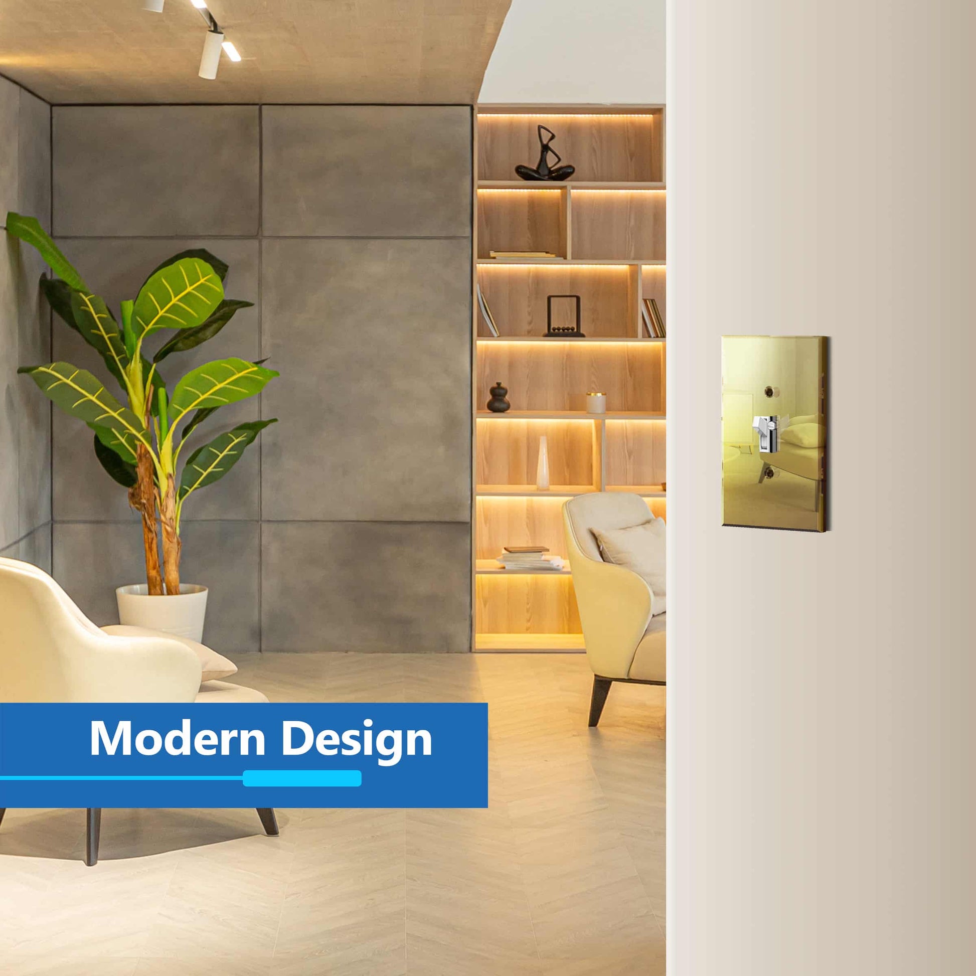 Built to be heat and impact-resistant, this decorative toggle switch wall plate withstands temperatures up to 140℉ and resists wear and tear. Perfect for luxury homes, upscale boutiques, executive offices, and stylish commercial interiors, this wall plate delivers a polished and refined appearance. Remove the protective film before use to reveal its pristine mirror-like reflection.
