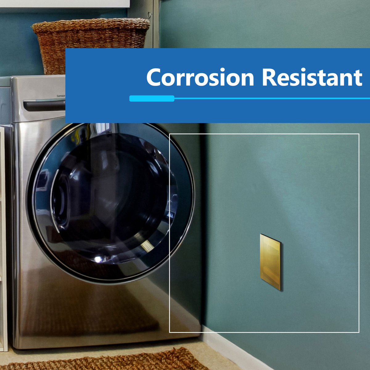 Made from 201 stainless steel (or 430 stainless steel for stainless finish), this wall plate provides high-impact resistance and enhances safety by preventing access to wiring, reducing the risk of breakage common with plastic covers. Its screwless design adds a clean, streamlined look while promoting child safety. Corrosion-resistant material extends wall plate life in extreme environments. This wall plate is heat-resistant to temperatures over 100°F to protect against discoloration and fading over time.
