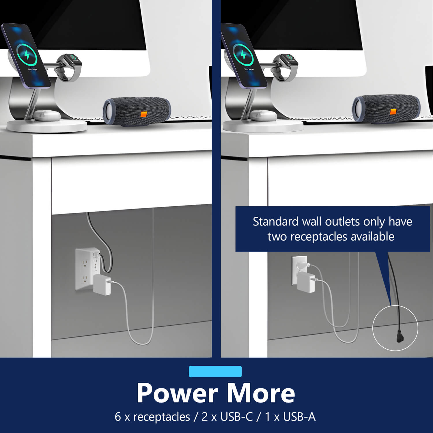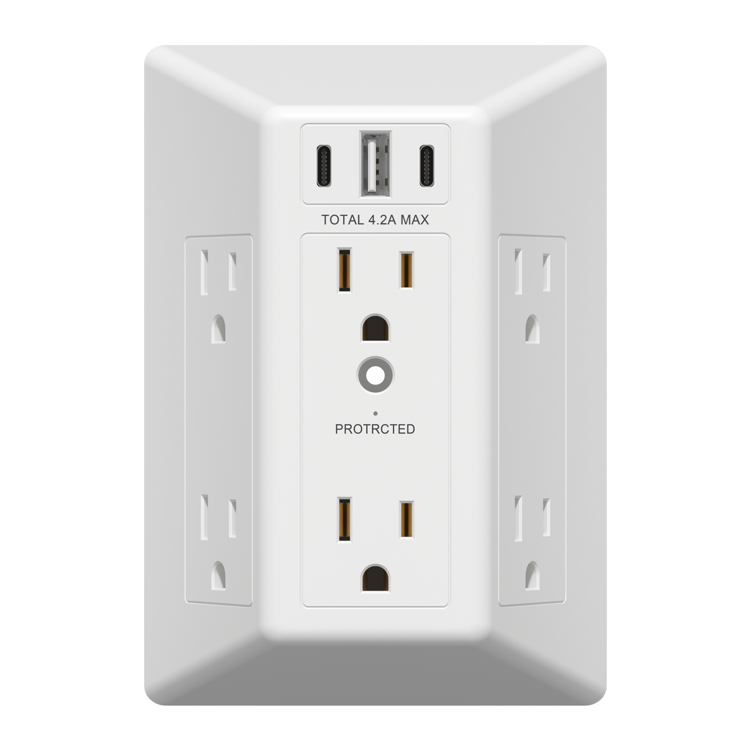 6-Outlet Surge Protector Expander with USB Type A/C, 1 Type A and 2 Type C Ports (4.2A Max), LED Surge Protection Indicator, Protect Up to 1500J, Compatible with Decorator and Standard Duplex